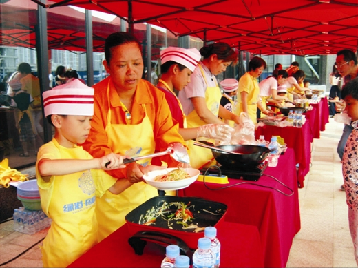 本報(bào)訊 昨日上午,南寧經(jīng)濟(jì)技術(shù)開發(fā)區(qū)在綠港·國際中心開展了以“關(guān)愛農(nóng)民工·綠港小廚神”親子活動(dòng),吸引了南寧經(jīng)開區(qū)園林綠化工人、水電維修物業(yè)工人、保潔人員等300多名進(jìn)城務(wù)工人員及其子女參加。在活動(dòng)現(xiàn)場,參賽小選手們在父母的指導(dǎo)下井井有條地備菜、炒菜、起鍋,忙得不亦樂乎。