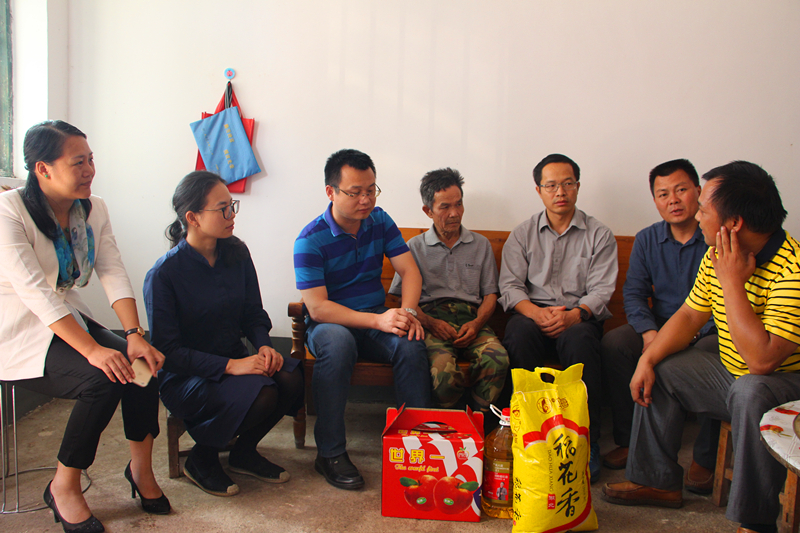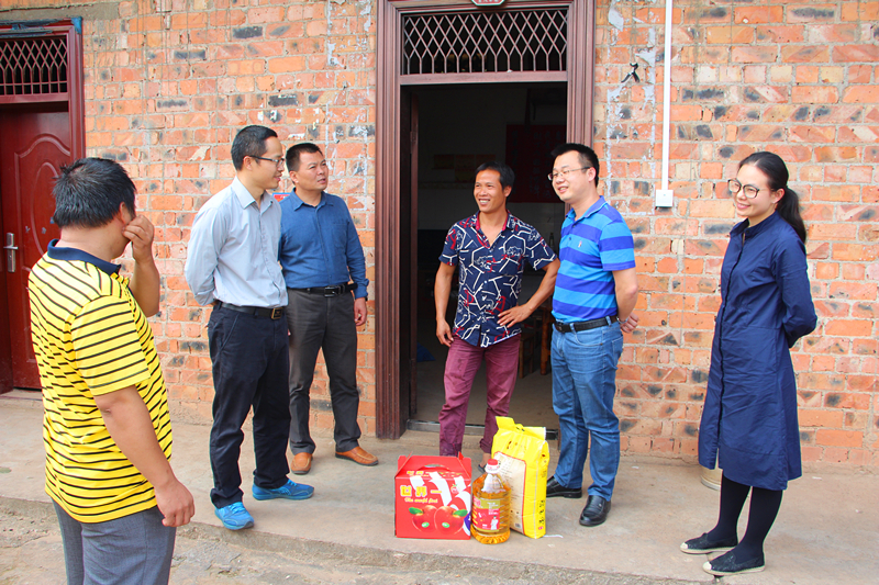 座談會結(jié)束后,在那樓鎮(zhèn)陸文威書記的陪同下,龔國強(qiáng)董事長一行先后來到貧困戶盧創(chuàng)興和梁蔭坎家里開展入戶慰問工作。在盧創(chuàng)興家里,龔董事長緊緊握住盧創(chuàng)興老人的手,詳細(xì)地了解盧創(chuàng)興家庭情況,當(dāng)了解到盧創(chuàng)興家通過轉(zhuǎn)移勞動力的方式,增加創(chuàng)收途徑,實(shí)現(xiàn)脫貧的時候,龔董事長頻頻點(diǎn)頭。在貧困戶梁蔭坎家里,董事長了解到他通過發(fā)展種養(yǎng),憑著農(nóng)村人樸實(shí)無華的特質(zhì),種養(yǎng)產(chǎn)品不僅獲得豐收且供不應(yīng)求的時候,董事長給他豎起了大拇指,鼓勵他繼續(xù)擴(kuò)大生產(chǎn)規(guī)模,早日實(shí)現(xiàn)小康生活。調(diào)研組一行還向兩戶貧苦戶送上了慰問品。