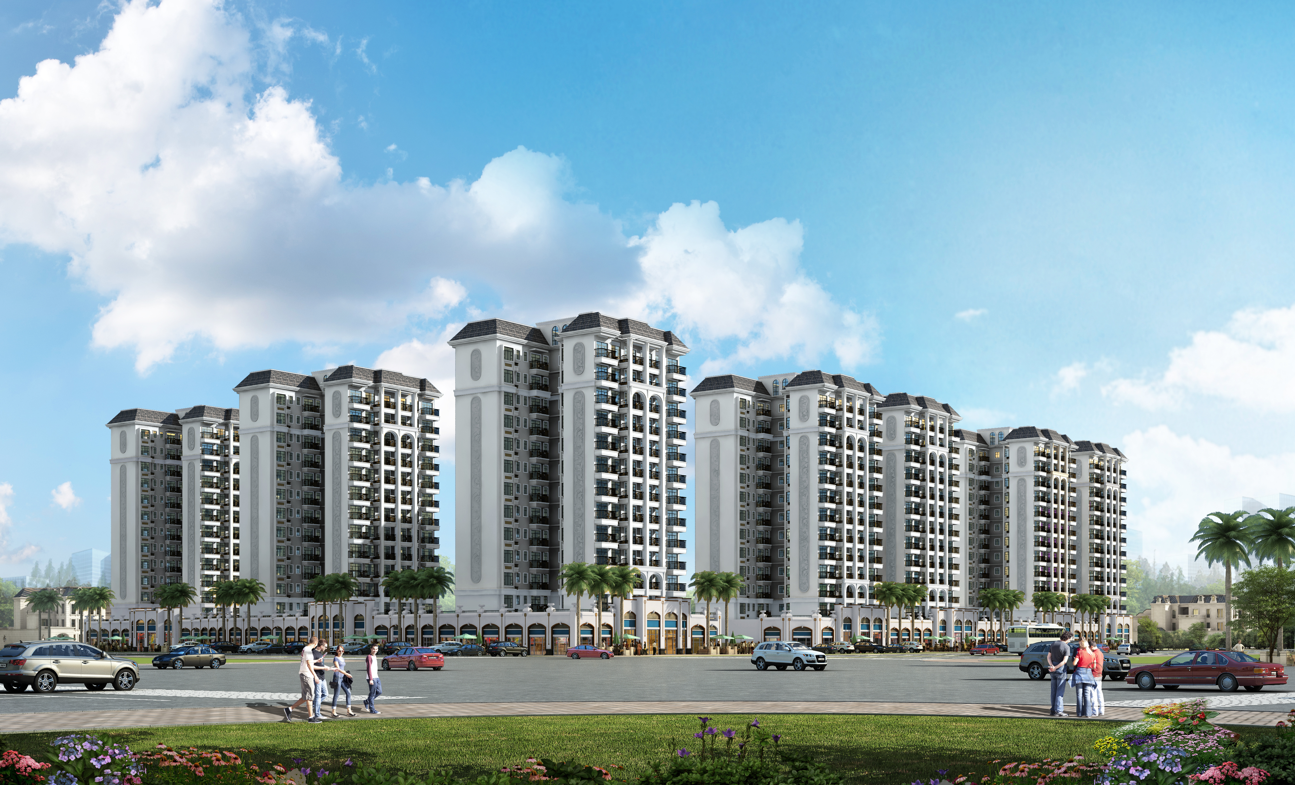二期以6棟13層法式小高層建筑為主,占地約40.54畝,容積率2.35,綠化率30.63%,建筑面積約9萬㎡,共480戶,停車位比例達1:1.4。已售罄。
