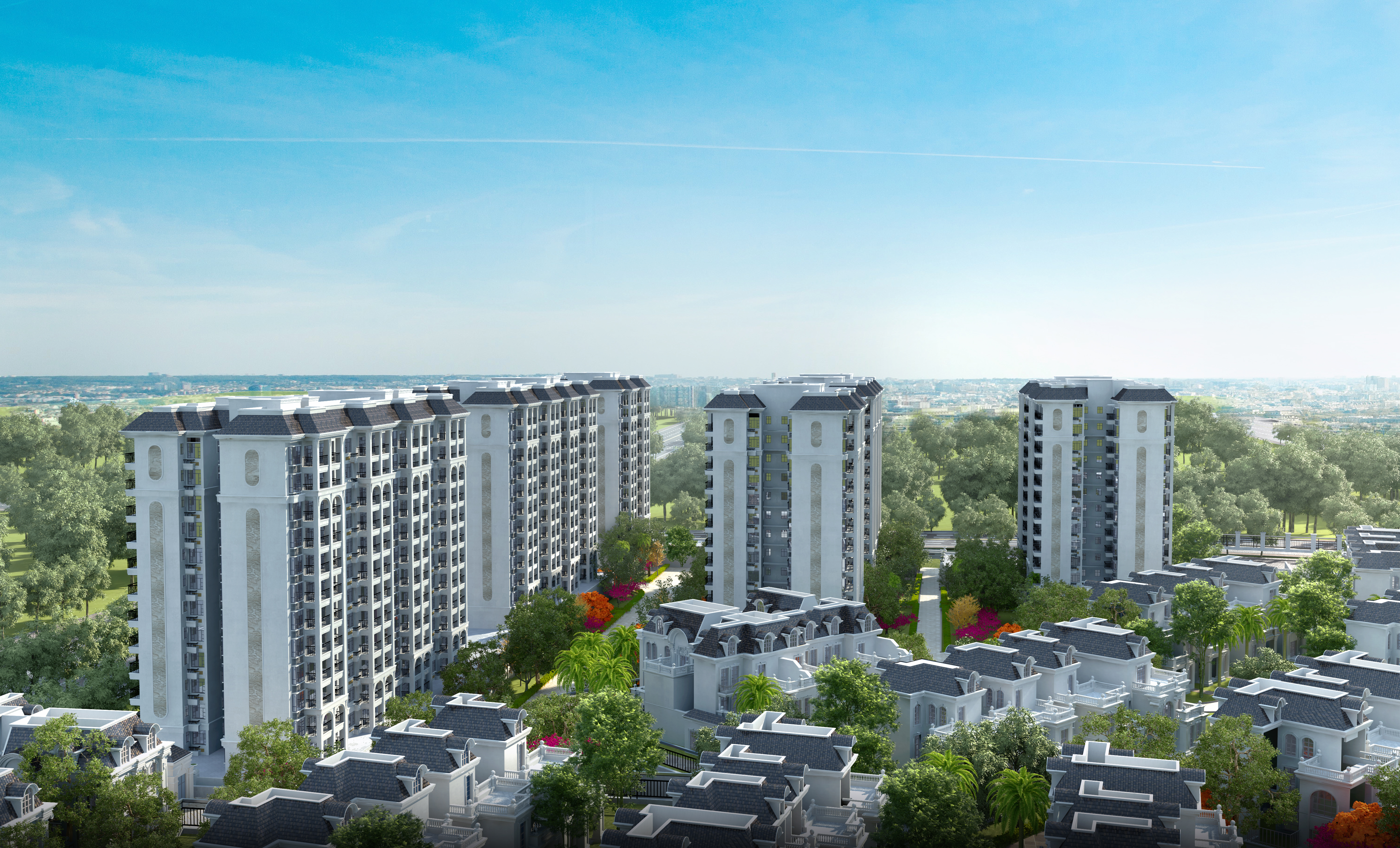 綠港·尚尊一品位于南寧市江南區(qū)空港經(jīng)濟區(qū)商居住區(qū)核心位置,光明路與友誼路交匯處,總占地面積約129畝,總建筑面積約17.8萬㎡,整個小區(qū)由31棟浪漫法式別墅、6棟延續(xù)濃厚法式風(fēng)情的高層住宅圍合而成。小區(qū)東面、北面為純居住空間,西南面的臨街底層為5200㎡的風(fēng)情商業(yè)街,為業(yè)主的日常生活營造便利的商業(yè)服務(wù),項目整體共671戶,車位1382個,配比高達1:2.1,綜合容積率1.2(高層2.35,別墅0.68),建筑密度27.38%,預(yù)計總投資13億元。