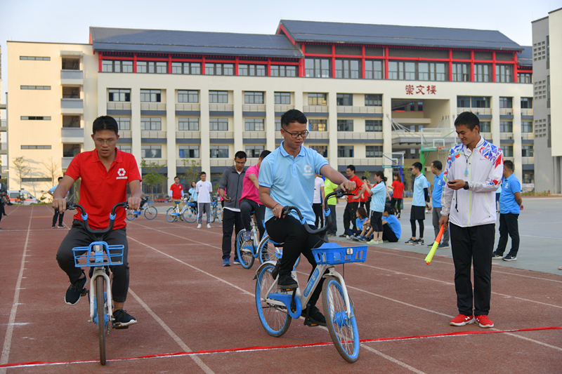 趣味類的活動(dòng)更講究技巧和團(tuán)隊(duì)合作,比如快樂(lè)運(yùn)球,五個(gè)人用身體頂著健身球往前跑,帶頭的人既不能跑太快,后方的人也不能拼命擠或拉開距離,這樣球才不容易被擠落。為了贏得比賽,參賽隊(duì)員們可沒(méi)少費(fèi)腦力,最終他們憑借集體的智慧和團(tuán)隊(duì)的合作,在運(yùn)動(dòng)場(chǎng)上都發(fā)揮了出色的表現(xiàn)。報(bào)名人數(shù)最多的滾鐵圈項(xiàng)目,則以獨(dú)特而懷舊的道具吸引了65人報(bào)名參加。隨著鐵圈飛轉(zhuǎn),它仿佛讓大家回到了快樂(lè)的童年時(shí)光,不少職工撒開腿歡跑起來(lái)。即便有些運(yùn)動(dòng)員從來(lái)就沒(méi)有玩過(guò)滾鐵圈,滾得歪歪扭扭,也勇于嘗試,堅(jiān)持完成比賽,贏得了兩旁觀眾們的掌聲。