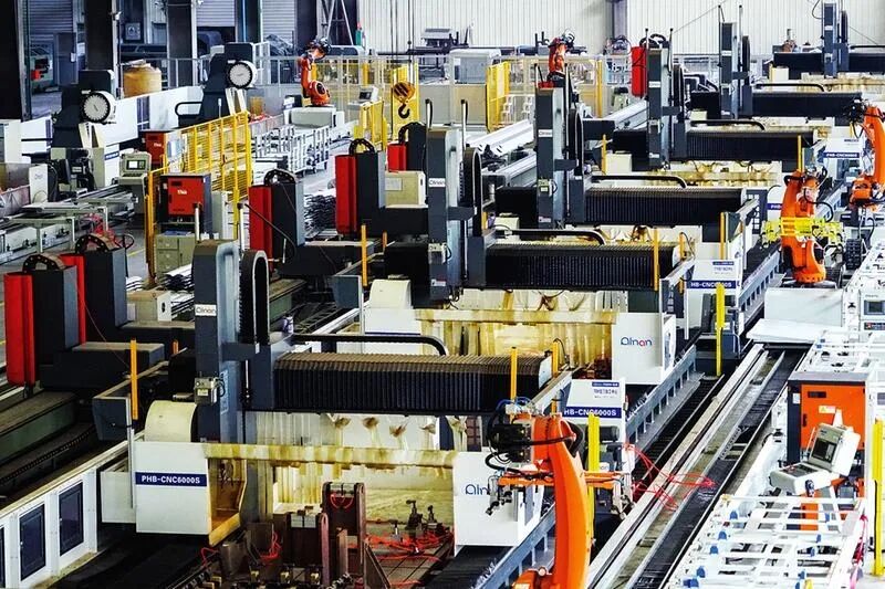 南南鋁業(yè)的自動化加工中心內(nèi),機器人正在加工鋁合金型材。 記者葉子榕攝